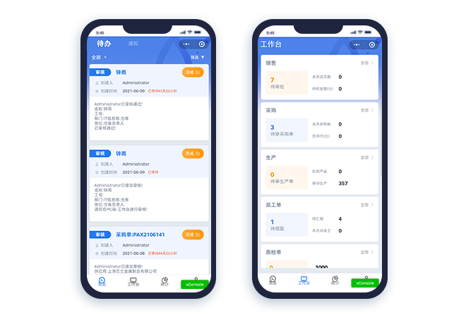 业务人员可以在移动端快速处理及响应实时掌握生产进度